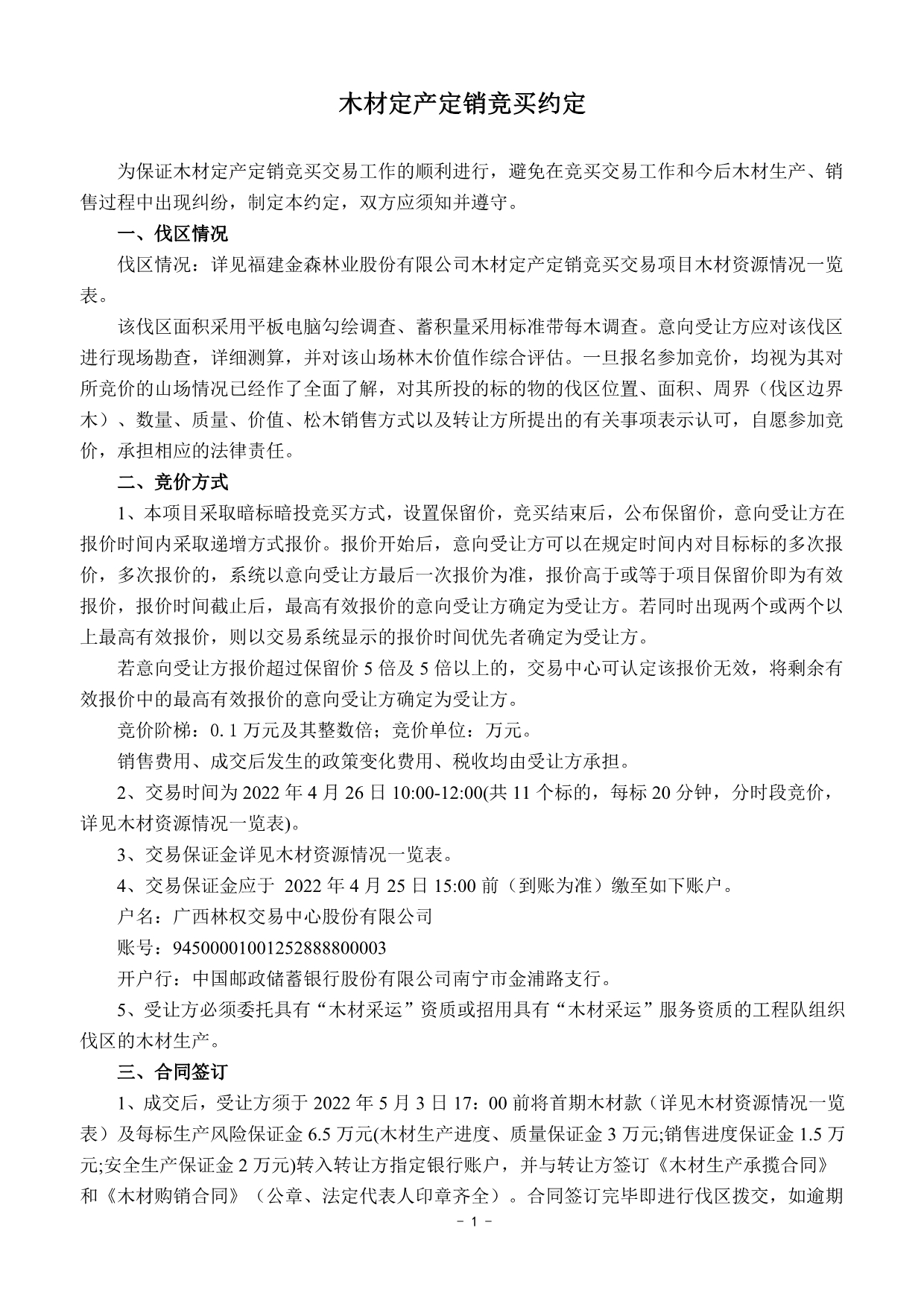 20220426(周二)福建金森林業(yè)股份有限公司木材定產(chǎn)定銷競買交易項(xiàng)目